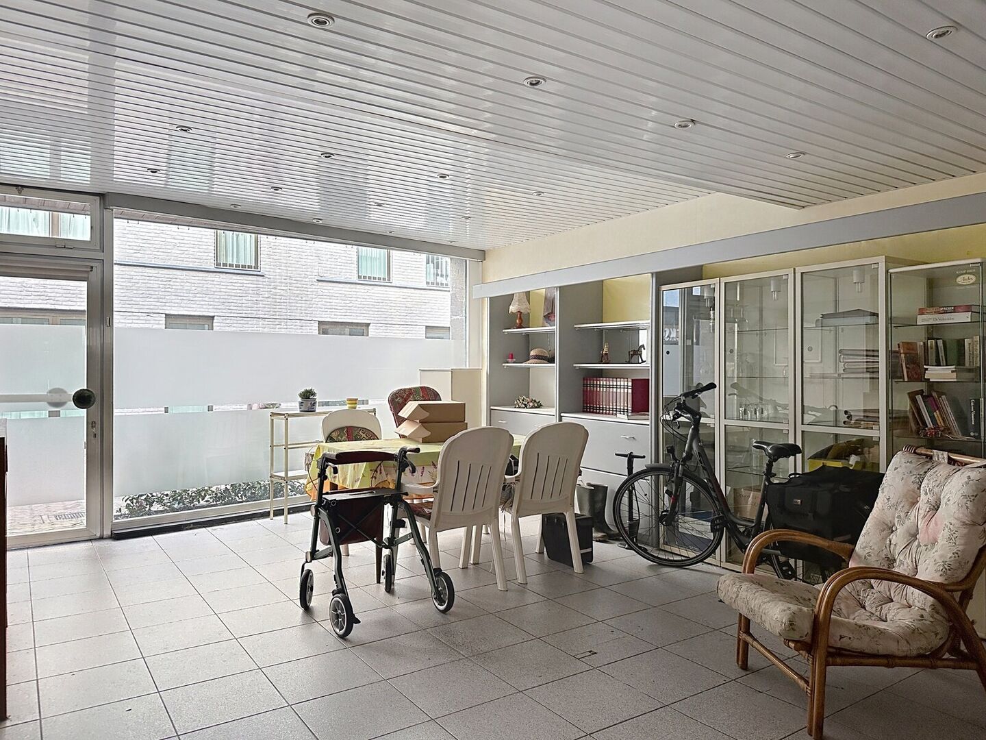 Vooraan een ruime winkelruimte met grote etalage, ideaal voor diverse handelszaken.