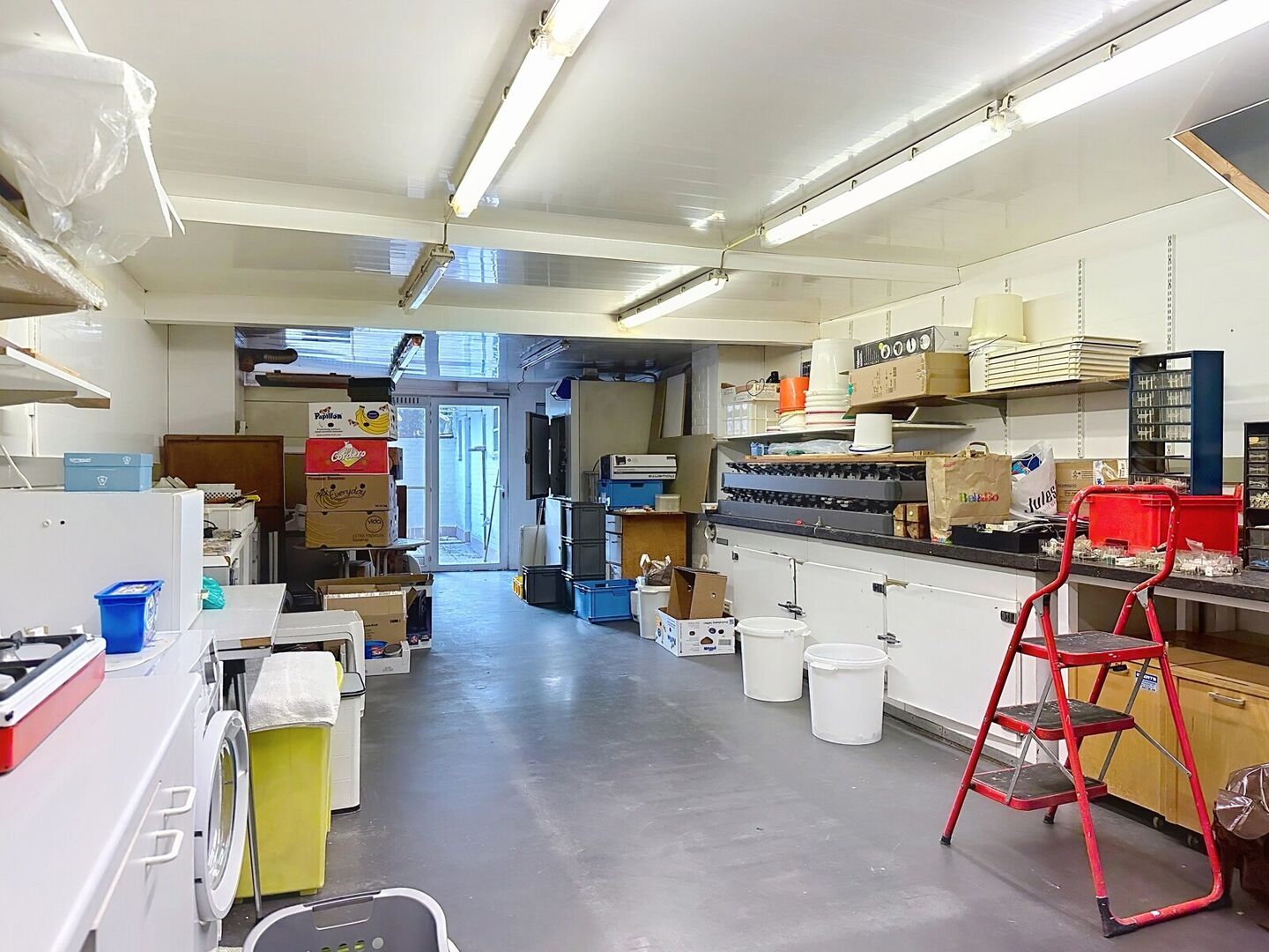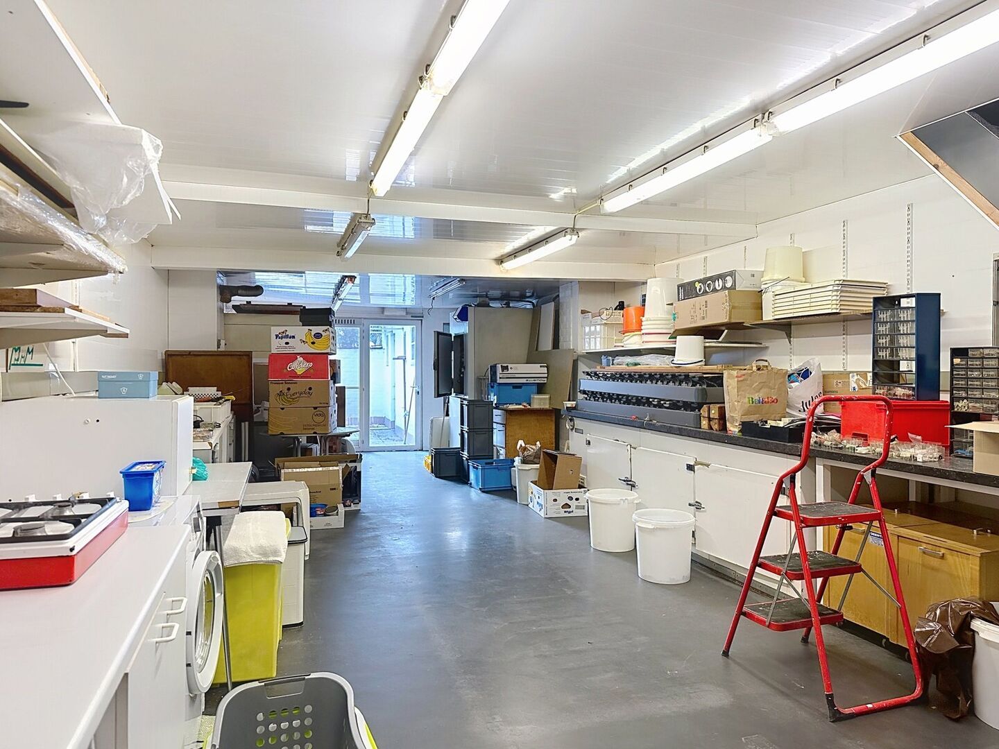 Achteraan een ruim atelier, voorheen gebruikt als bakkerij – perfect voor ambachtelijke beroepen of extra opslag.