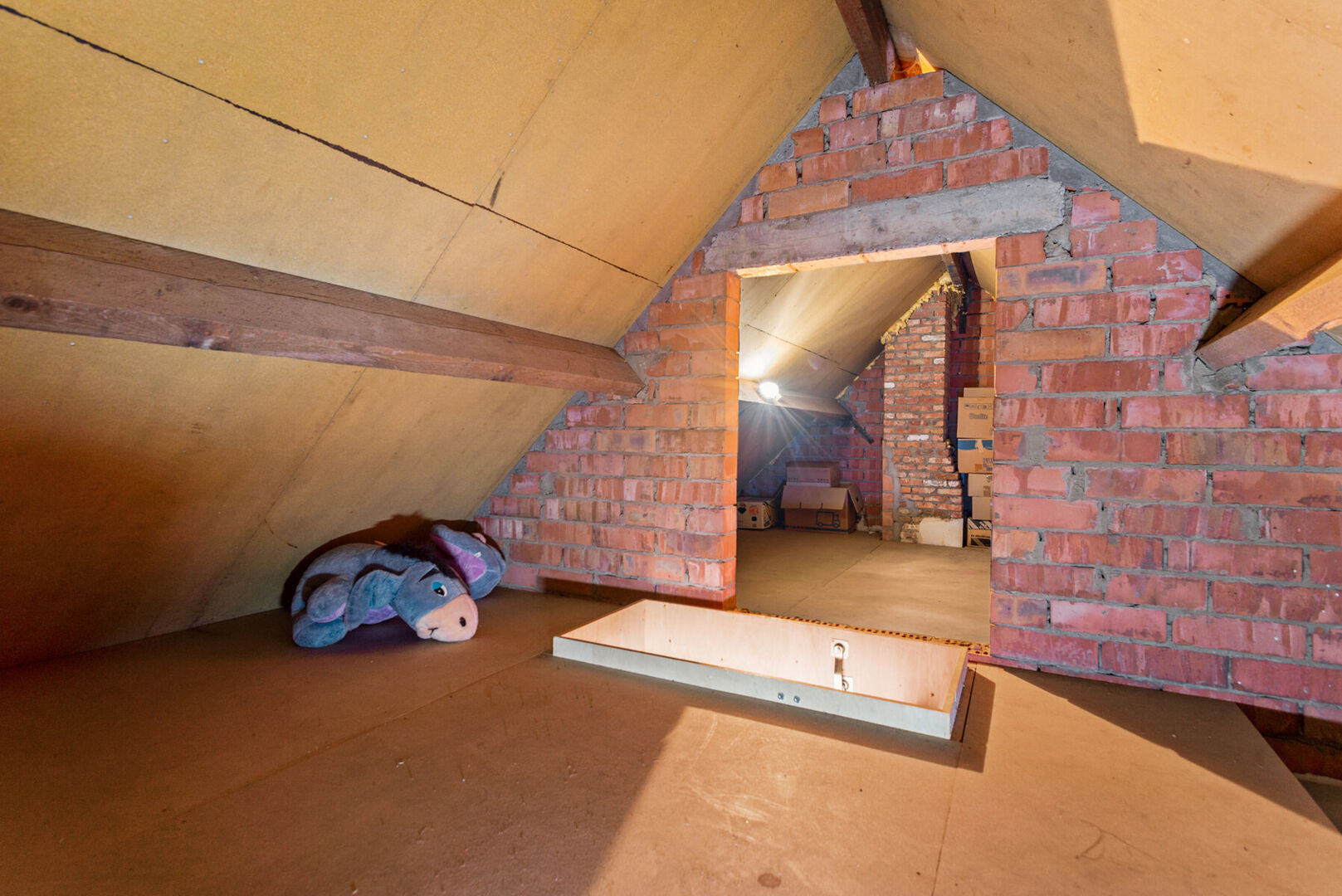 Tweede verdieping: eindeloze mogelijkheden De ruime overloop leidt naar één grote kamer die je moeiteloos kunt omvormen tot twee extra slaapkamers, kantoor of speelruimte. Twee bergingen zorgen ervoor dat alles zijn plaats vindt. En via de trektrap bereik je de bergzolder – nooit meer opslagtekort!